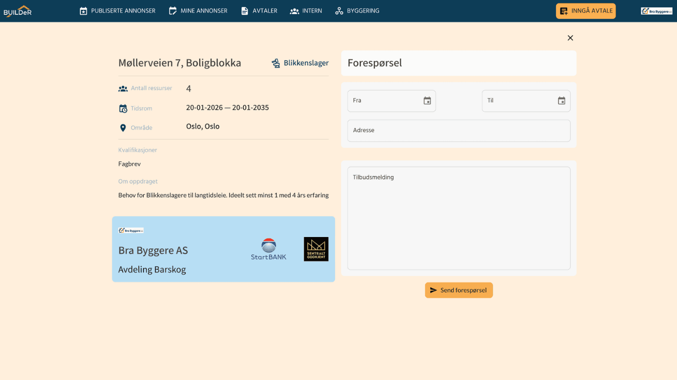 Legg ut behovet ved å fylle ut et enkelt skjema.